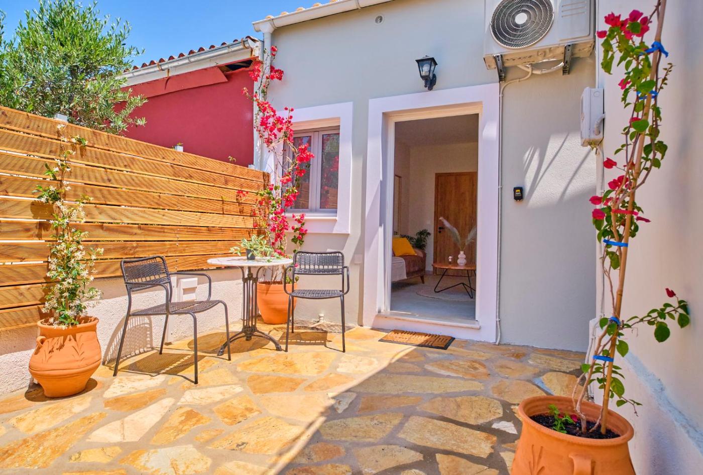 Holiday Home. Boasting a private entrance, this air-conditioned holiday home includes 1 living room, 1 separate bedroom and 1 bathroom with a shower and a hairdryer. Guests can make meals in the kitchen that is fitted with a stovetop, a refrigerator, kitchenware and an oven. Featuring a terrace with sea views, this holiday home also offers a washing machine and a flat-screen TV. The unit has 2 beds.