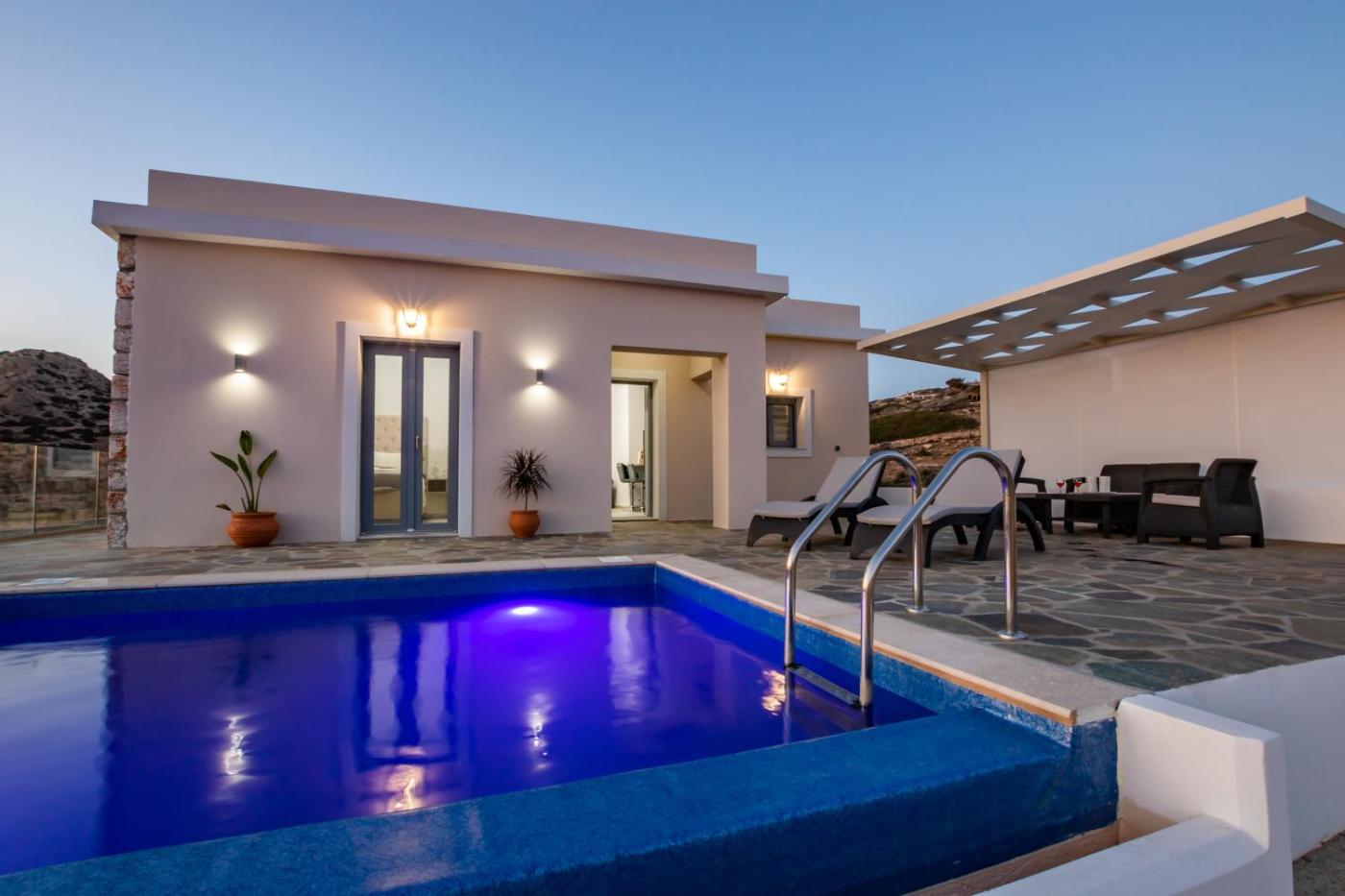 Two-Bedroom Villa. This villa features a pool with a view. The villas kitchen, which has a stovetop and a refrigerator, is available for cooking and storing food. The air-conditioned villa features a flat-screen TV, a washing machine, a private entrance, a tea and coffee maker as well as sea views. The unit has 3 beds.
