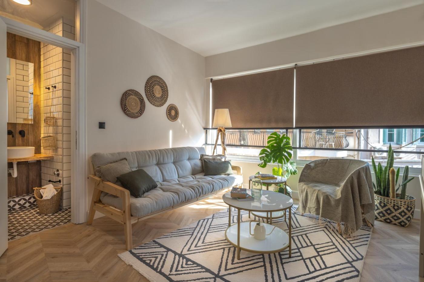 One-Bedroom Apartment. This air-conditioned apartment comprises 1 living room, 1 separate bedroom and 1 bathroom with a shower. Meals can be prepared in the kitchen, which comes with a stovetop, a refrigerator, kitchenware and an oven. The apartment provides a tea and coffee maker, a seating area, a sofa, a flat-screen TV with streaming services, as well as city views. The unit offers 2 beds.