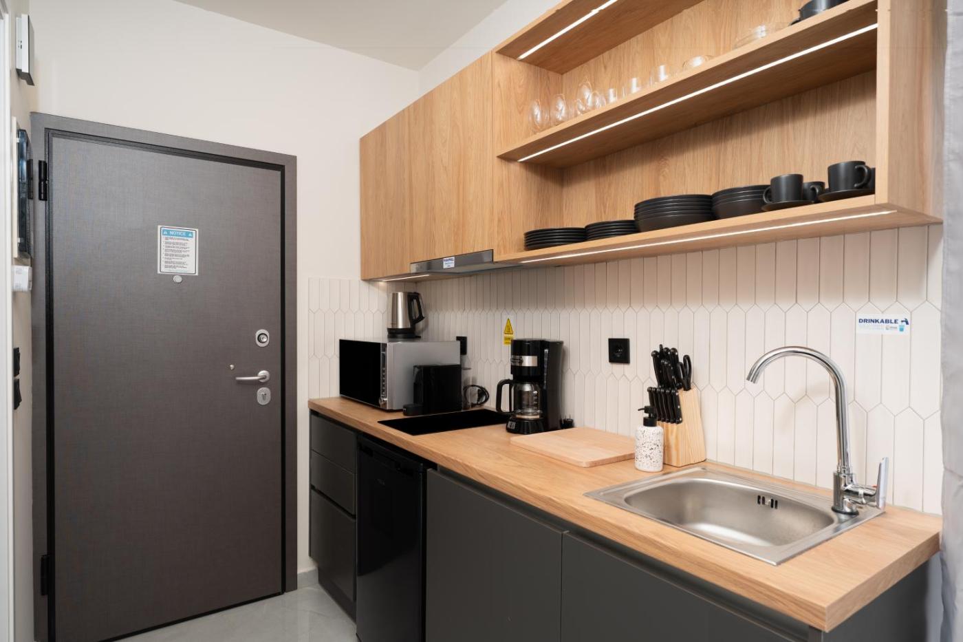 One-Bedroom Apartment with Balcony and City View. This apartment comes with 1 living room, 1 separate bedroom and 1 bathroom with a shower and free toiletries. In the well-fitted kitchen, guests will find a stovetop, a refrigerator, kitchenware and a microwave. Boasting a terrace with city views, this apartment also features air conditioning and a flat-screen TV. The unit has 2 beds.