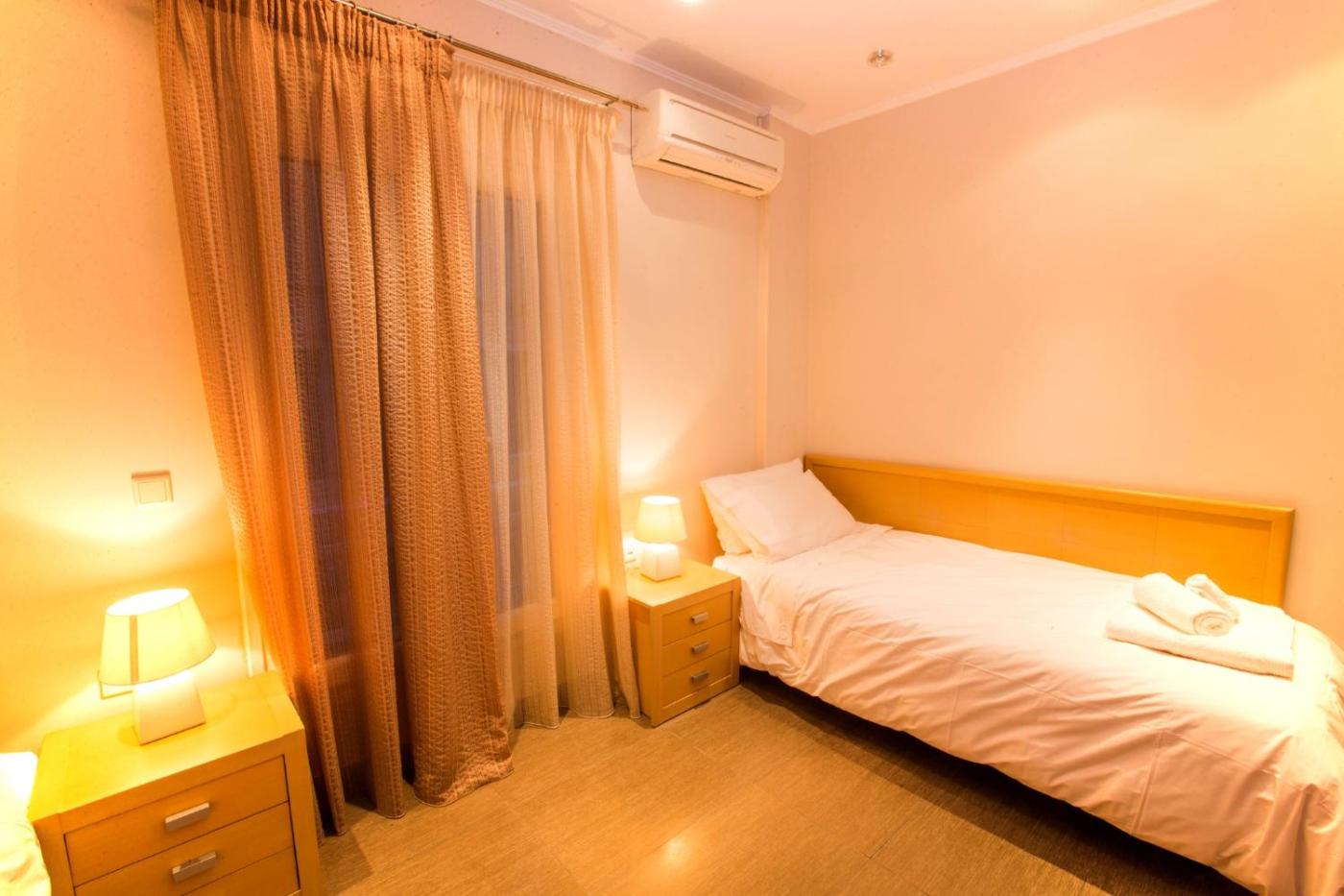 Three-Bedroom Apartment. This spacious apartment comprises 1 living room, 3 separate bedrooms and 2 bathrooms with a shower and a hairdryer. Meals can be prepared in the kitchen, which comes with a stovetop, an oven, a microwave and a toaster. The air-conditioned apartment provides a flat-screen TV, a washing machine, a tea and coffee maker, a dining area as well as city views. The unit offers 5 beds.