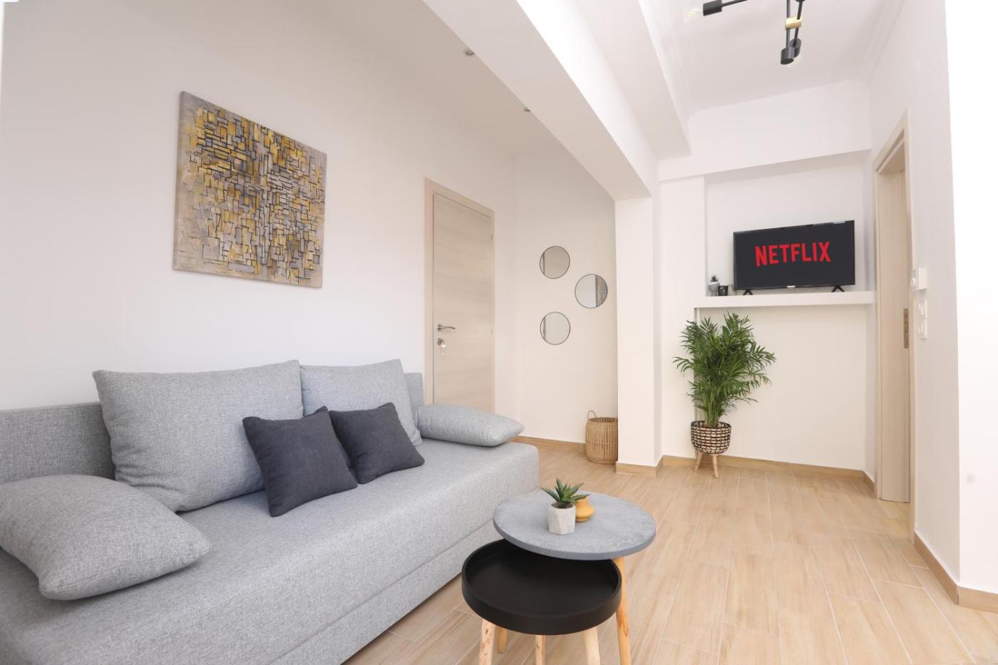 One-Bedroom Apartment. Featuring a private entrance, this air-conditioned apartment consists of 1 living room, 1 separate bedroom and 1 bathroom with a bath or a shower and a hairdryer. The fully equipped kitchen features a stovetop, a refrigerator, kitchenware and an oven. Boasting a terrace with garden views, this apartment also provides a washing machine and a flat-screen TV with streaming services. The unit offers 2 beds.