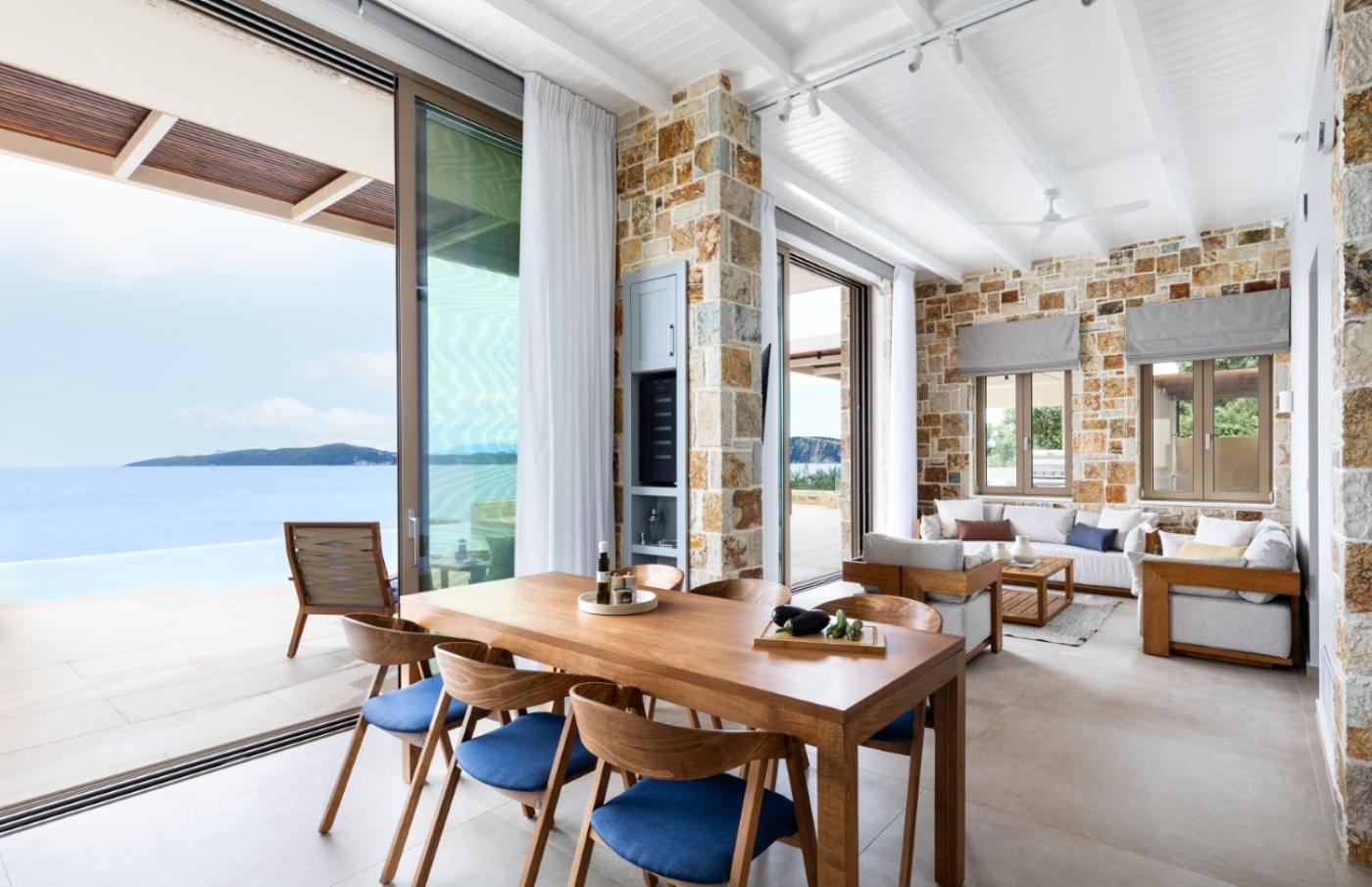 Three-Bedroom Villa. This villas standout feature is the private pool. Boasting a private entrance, this air-conditioned villa includes a kitchen, 3 bedrooms and 2 bathrooms with a shower and a hairdryer. Guests will find a refrigerator, a dishwasher, kitchenware and an oven in the well-equipped kitchen. The villa also features a barbecue. Featuring a terrace with sea views, this villa also offers a washing machine and a TV. The unit has 4 beds.