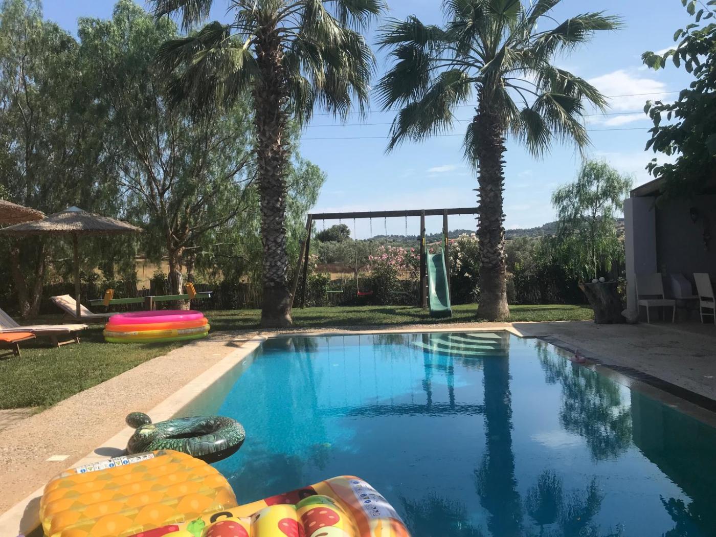 Four-Bedroom House. The pool with a view and fireplace are the standout features of this holiday home. Guests will find a stovetop, a refrigerator, a dishwasher and kitchenware in the kitchen. The holiday home also offers a barbecue. The spacious holiday home provides air conditioning, a washing machine, a terrace with sea views as well as a shared bathroom featuring a walk-in shower. The unit offers 8 beds.