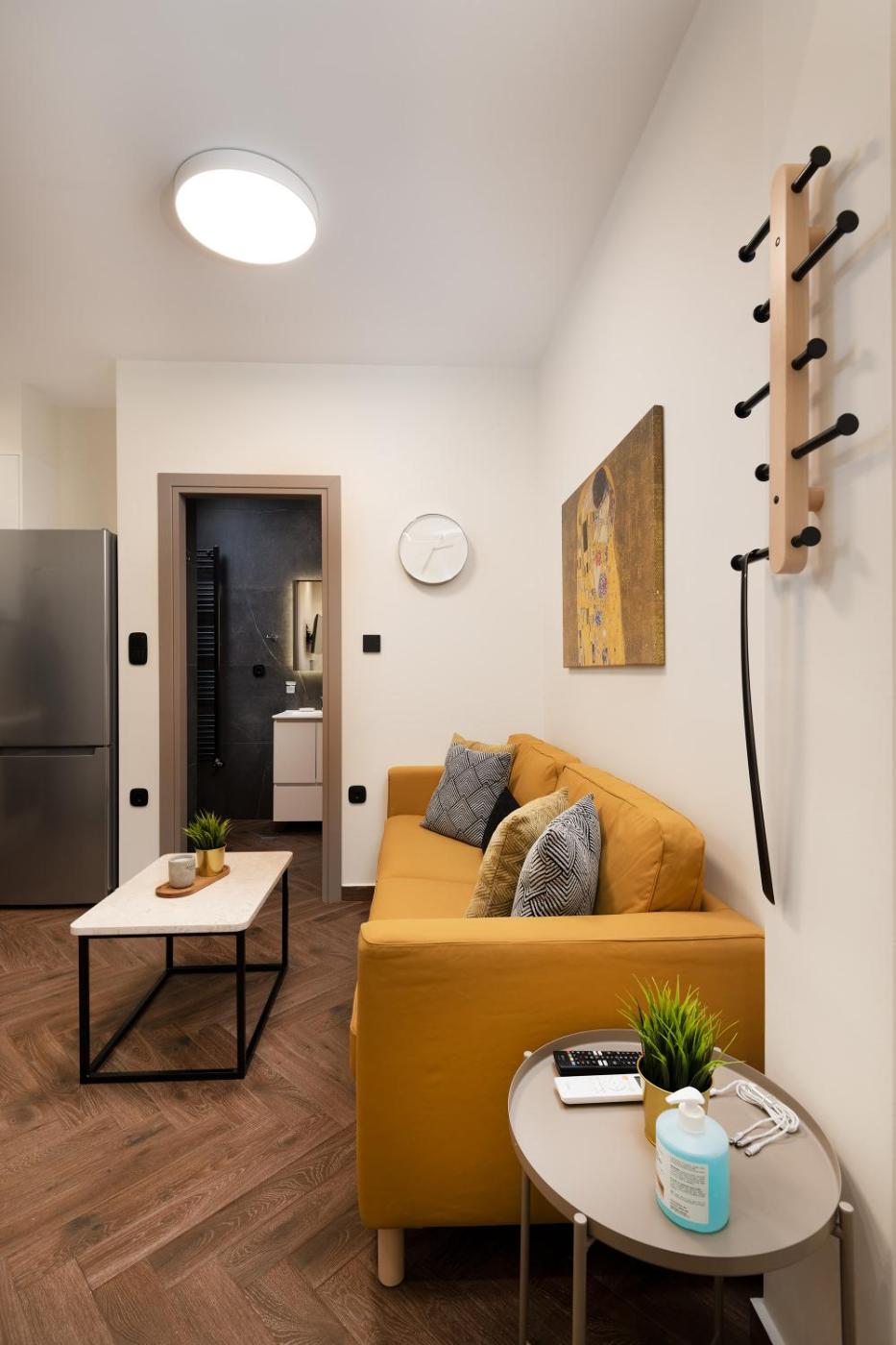 One-Bedroom Apartment. This apartment comprises 1 living room, 1 separate bedroom and 1 bathroom with a shower and free toiletries. Meals can be prepared in the kitchen, which comes with a stovetop, a refrigerator, kitchenware and an oven. This apartment is air-conditioned and features a seating area with a flat-screen TV, a washing machine, soundproof walls, a tea and coffee maker, as well as a wardrobe. The unit offers 2 beds.